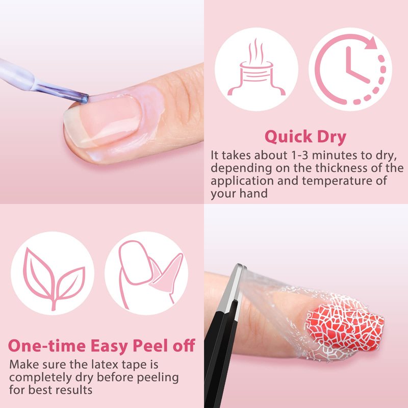 • NO RISK PURCHASE : Make sure the latex tape is completely dry before peeling for better results. Nail latex tape takes approximately 1 to 3 minutes to dry, depending on the thickness of the application. We offer 24-hour customer service, If you have any quality issues with this product, please tell us through Amazon.