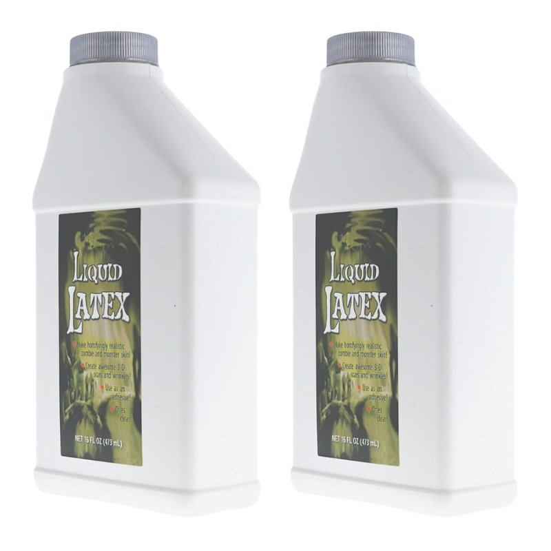 Liquid Latex for Special Effects (2 Pack Set) 16 Oz EACH! Skin-Safe, Dries Clear, Easy Application, for Halloween, Cosplay, Zombie SFX and Movie Makeup