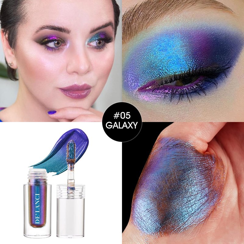 - 【Intense Color Shifting】: #5-Galaxy duochrome liquid eye shadow includes a vast spectrum of colors,in multi-tone shimmer and intense metallic finishes. When viewed head on there only appears to be one color, however, color shifts become visible when viewed at different angles on a rounded surface (such as an eyelid) and in different lighting