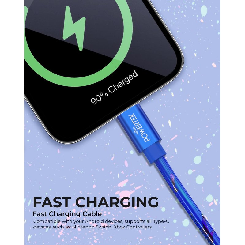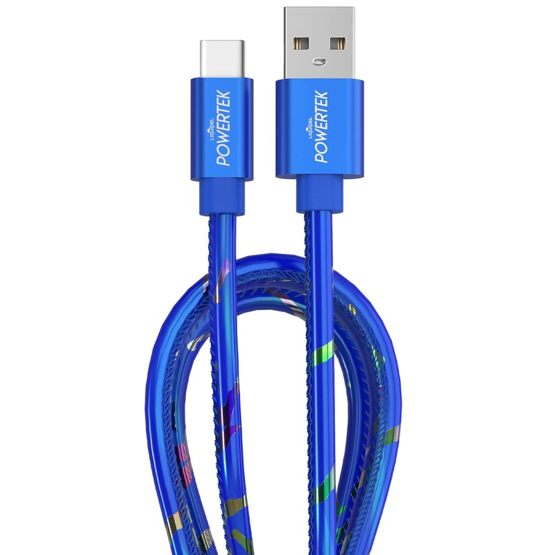 LIQUIPEL Powertek Type-C Fast Charger Cable, 6ft USB-C for Galaxy, Note, Tab, MacBook, Neon Party (Blue)