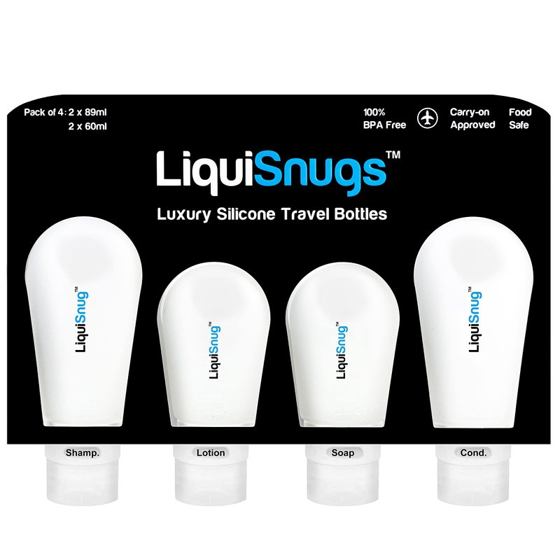 With LiquiSnugs, we give you two large (3-oz) and two medium (2-oz) bottles perfect for any toiletry of your choosing – even condiments or sauces! They won’t leak, they won’t get you pulled out of the security line, and you won’t mistake the contents of each bottle for something else.