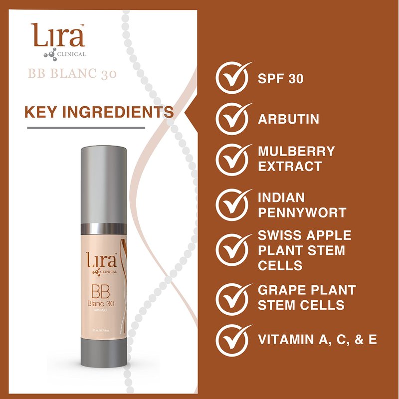 Lira Clinical BB - SPF 30 Tinted BB Cream with PSC & Vitamins - Full coverage - 0.7 fl oz. (BB Blanc 30)