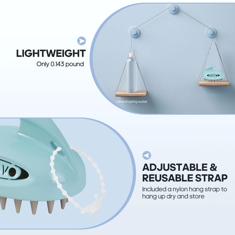 - Our scalp brush massager is only 0.143 pound for portable convenience and carry on the go. We also include an adjustable and reusable hang strap to hang up the hair growth scalp massager dry and store in a breeze.