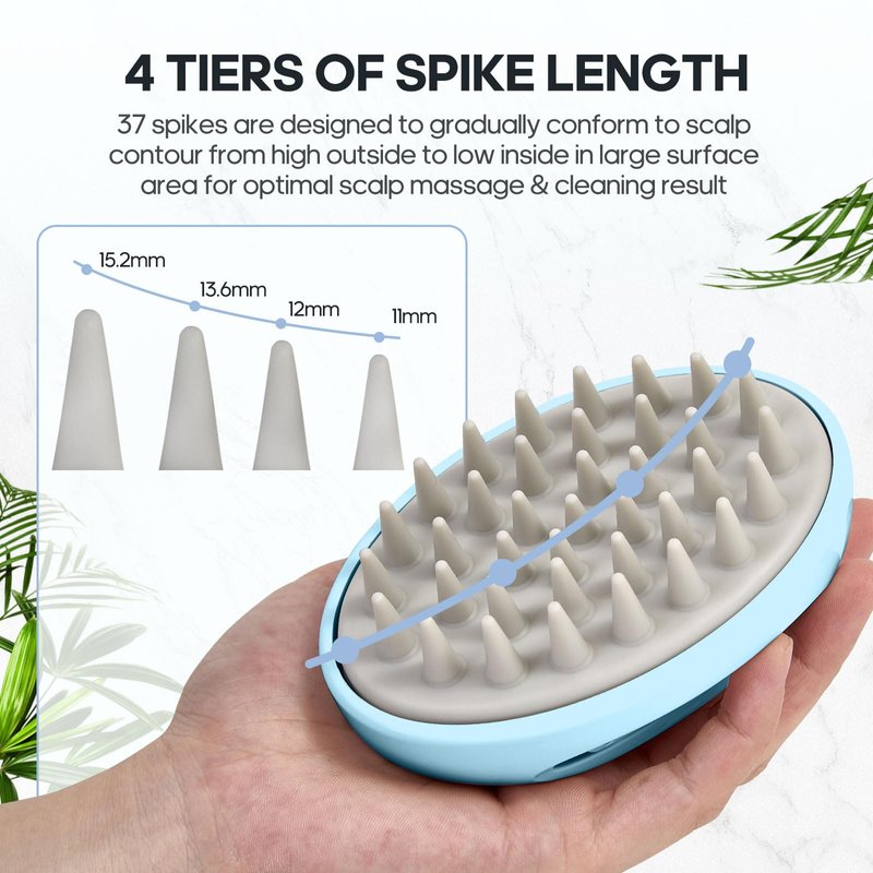 - The scalp massager for hair growth offers 3 levels of hardness & in 4 tiers of lengths provides the perfect contour contact for hair growth. The hair massager scalp for hair growth is suitable for both wet and dry use at home or on the go. The scalp exfoliator brush of soft scrub can use with essential oil & derma roller scalp hair growth.