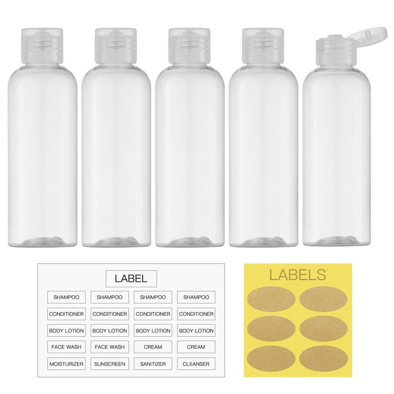 Lisapack 3.4oz Travel Bottles For Toiletries (5pcs), Travel Size Containers for Shampoo (100ml, Clear)