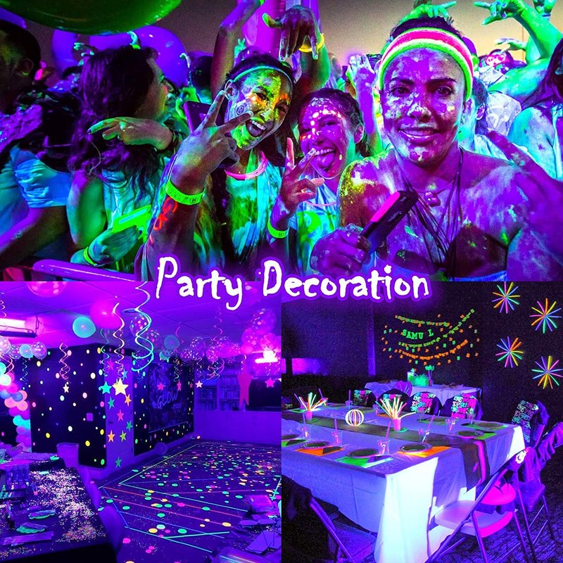 - 【GET GLOWING】Get glowing with these Litake black lights for glow party. Turn any event into a bright glow party with these fun lights up glow in the dark party supplies. Let's have a Glow Party and create a black party that will make an impression on all who attend.