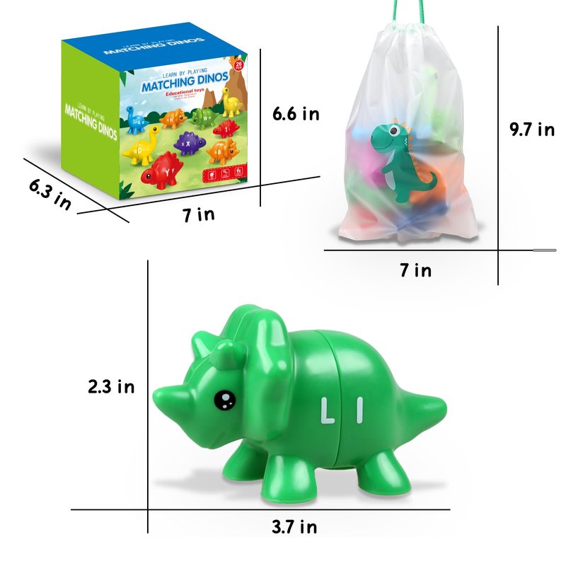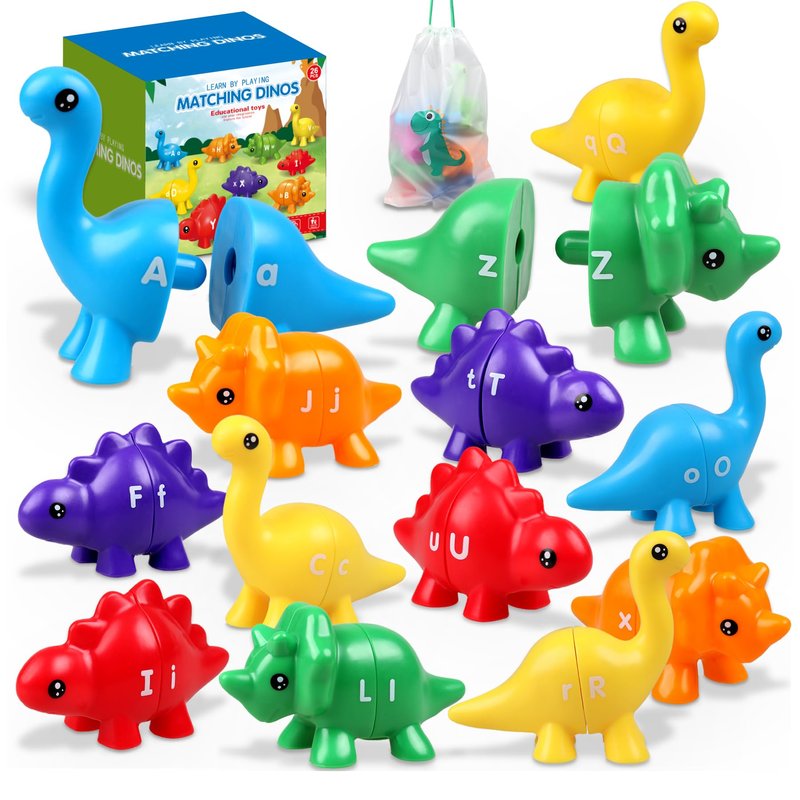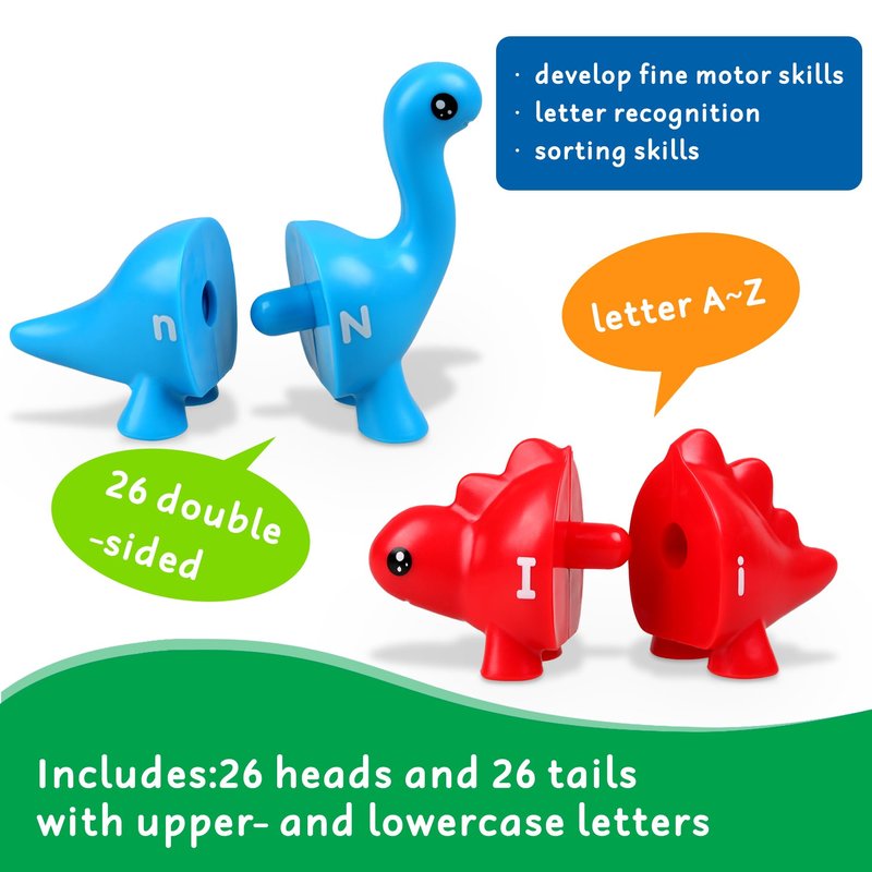- 【Litand Matching Letter Dinosaur Toys】- 26pcs double-sided dinosaurs featuring uppercase and lowercase letters. Design for little dinosaur fans. Easy to grip.