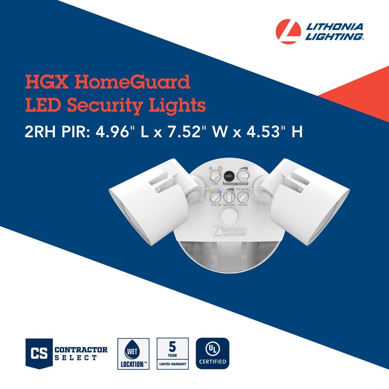 Lithonia Lighting HGX LED 2RH ALO SWW2 120 PIR WH M2 HomeGuard Security Flood Lights 2150-2600 Lumens, 2-Light, Photocell Sensor and Motion Detection, White