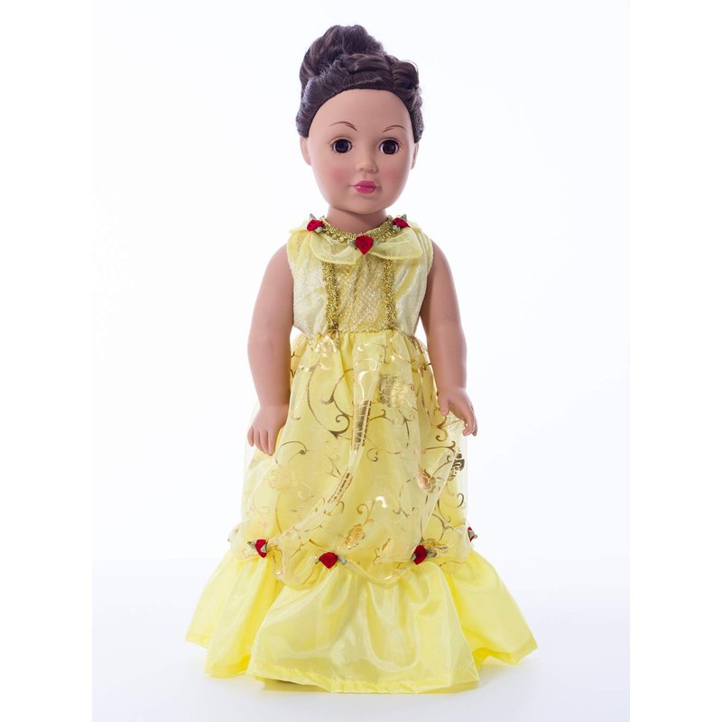 Little Adventures Yellow Beauty Princess Doll Dress - Doll Not Included - Machine Washable Child Pretend Play and Party Doll Clothes with No Glitter