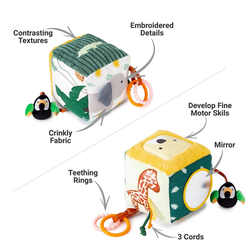 Little Big Friends Soft Activity Cube | Developmental Toy| Encourages Hand-Eye Coordination and Motor Skills | Jungle