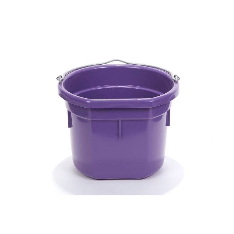 Little Giant® Flat Back Plastic Animal Feed Bucket | Animal Feed Bucket with Metal Handle | Horse Feed & Water Bucket | 8 Quarts | Purple