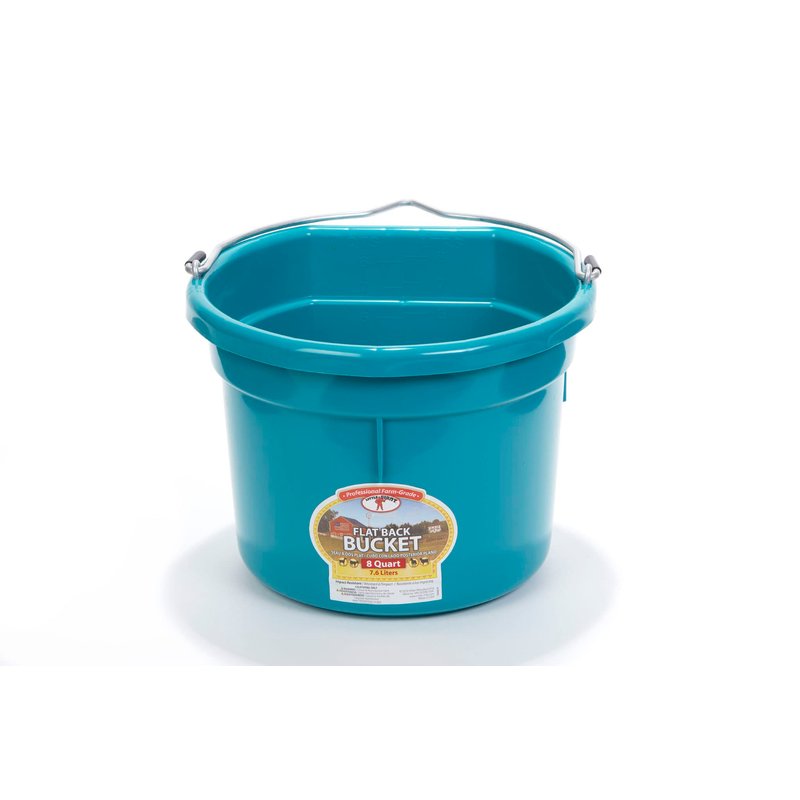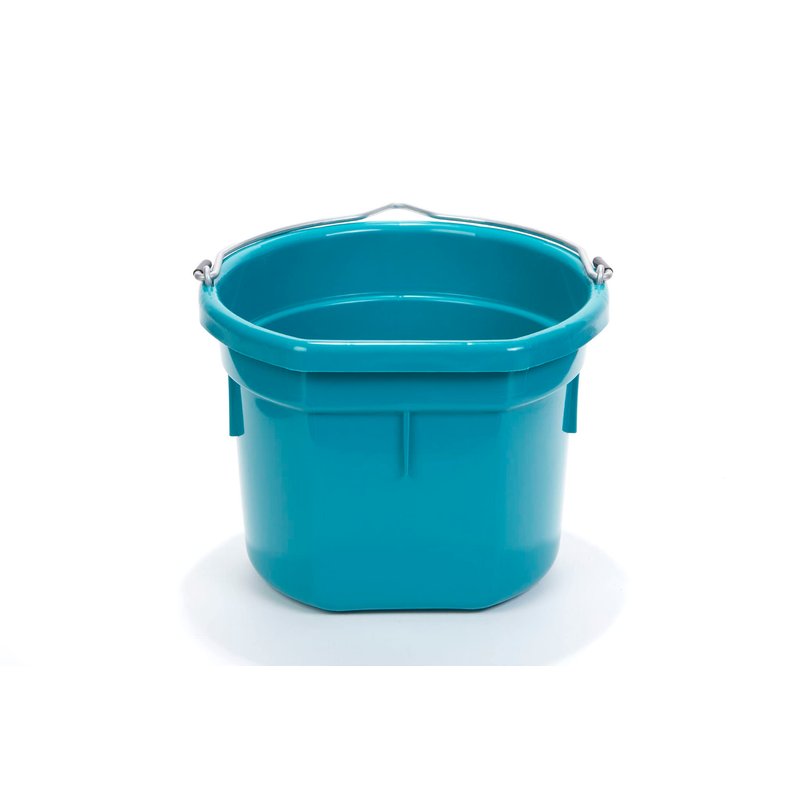 Little Giant® Flat Back Plastic Animal Feed Bucket | Animal Feed Bucket with Metal Handle | Horse Feed & Water Bucket | 8 Quarts | Teal