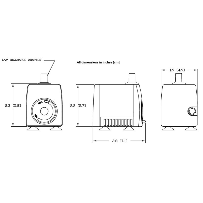 - SPECIFICATIONS: 115 Volts, 0.14 Amps; 8 Watts; 6-Foot Cord; 3/8-inch and 1/2-inch barbed adapters included; 77 GPH at 1-ft lift; 3.5-ft. shut-off; maximum fountain height 28 inches or less