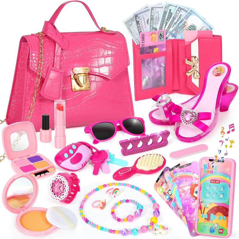 - EDUCATIONAL AND ENJOYABLE: Every girl dreams of becoming a fashionista, and our purse set makes it easy for them to achieve this dream. Girls can pretend to take photos with the toy phone and can also imitate shopping like mom with toy dollar bills and credit cards. This play purse kit not only inspires creativity and imagination but also boosts cognitive abilities and social skills.