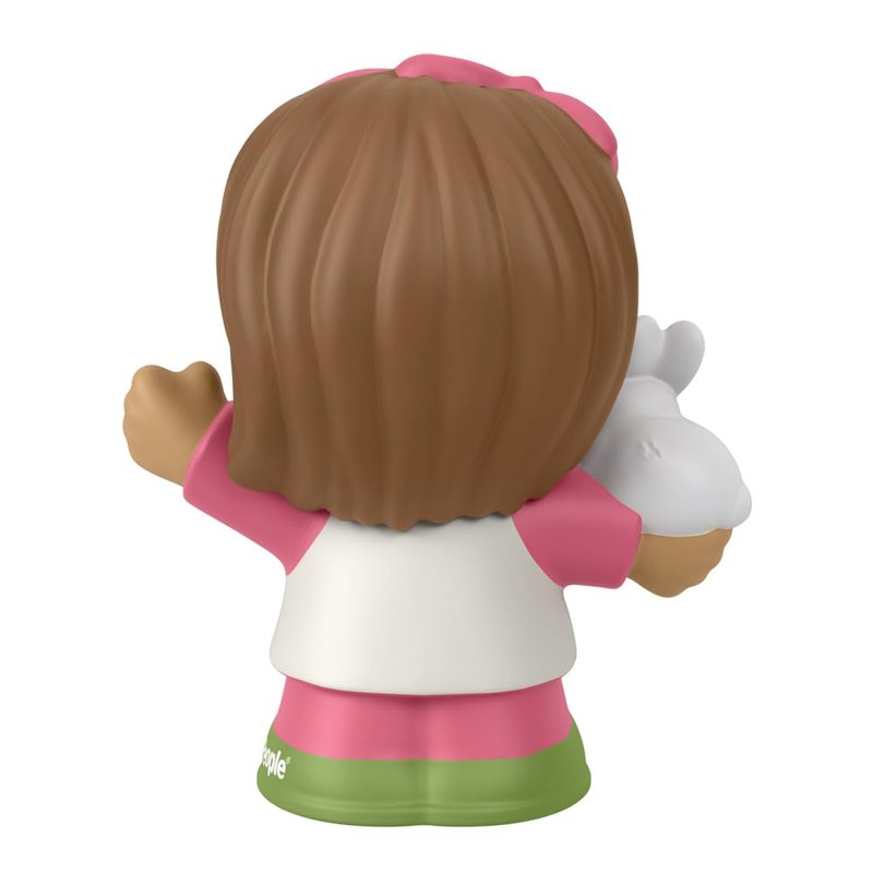 Little People Fisher-Price Figure for Toddler Dollhouse Playset - HXC05 - Little Girl Mia Figure with Brown Hair and Pink Hair Bow - Holding a White Bunny Rabbit