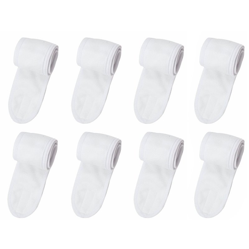 LIUMANG 8 Pack Spa Facial Headband Whaline Head Wrap Terry Cloth Headband Stretch Towel with Magic Tape for Bath, Makeup and Sport (White)