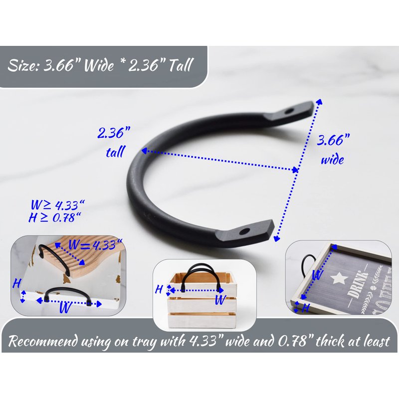 - Size: 3.66" wide, 2.36" tall, 0.23" thick, the right size for serving tray handles. It is not too big to serving trays, ottoman trays, boards or wooden boxes, but provide a holder for a tray to easily transport desserts, drink for your events.