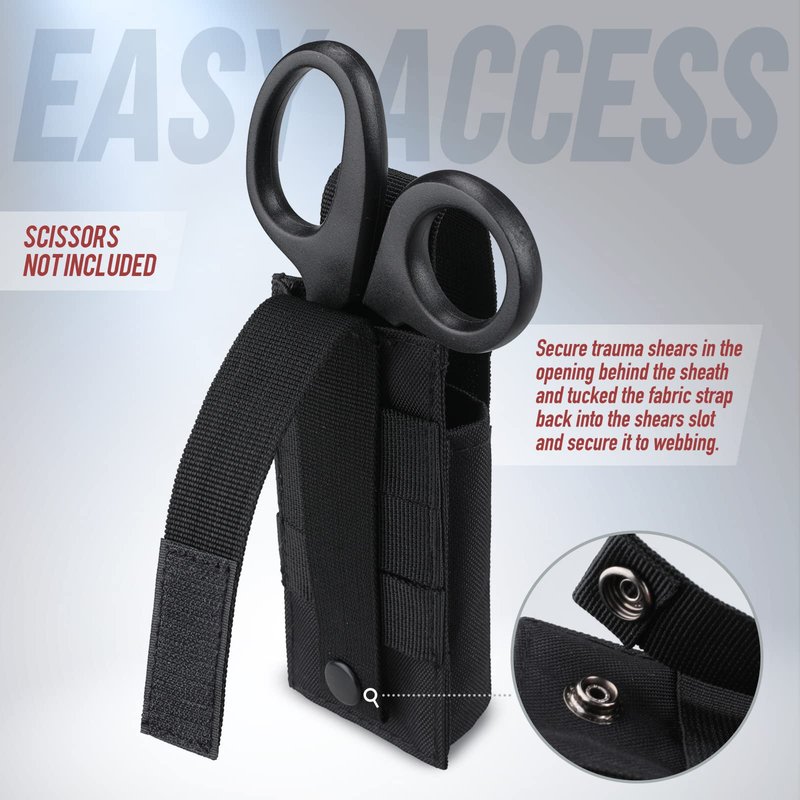 - DURABLE MATERIAL: EMT Scissors Pouch is constituted by high quality and durable 500D Nylon material and a metal snap. Hook-N-Loop ensures long-lasting use. A great survival or camping gear accessory.