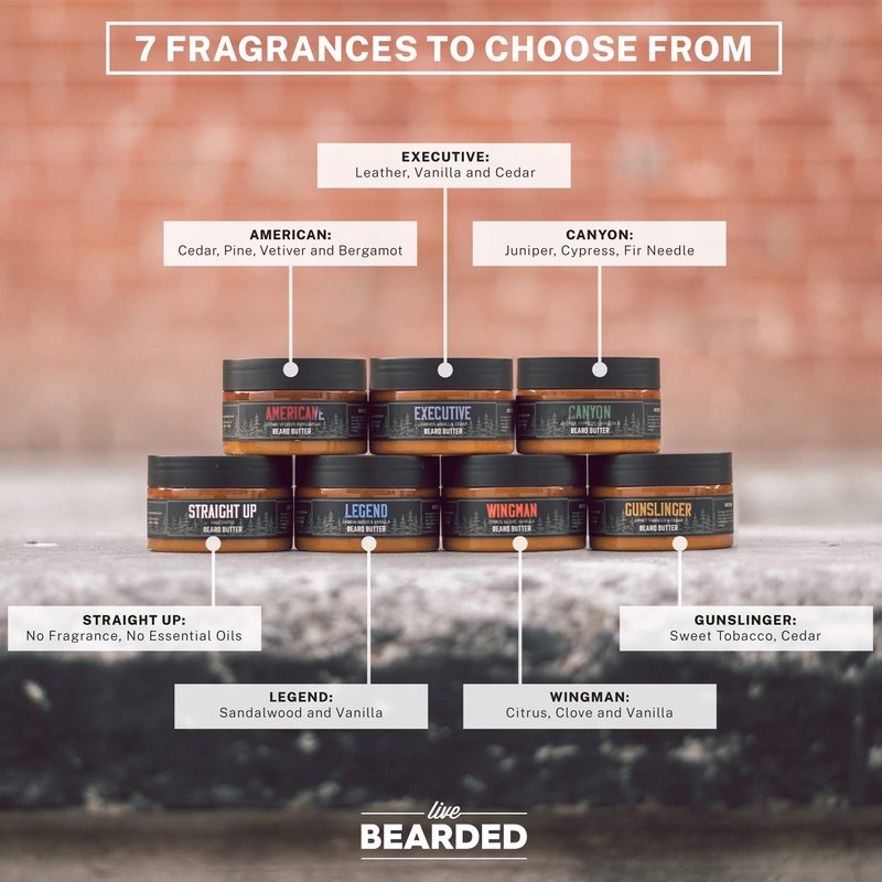 Unlike beard balm for men, which tends to contain thick wax and sticky ingredients for strong holds, our Live Bearded beard butter contains all-natural ingredients: Shea Butter, Coconut Oil, Jojoba Oil, Avocado Oil, Almond Oil, Grape-Seed Oil, Vitamin E, and Natural Fragrance.
