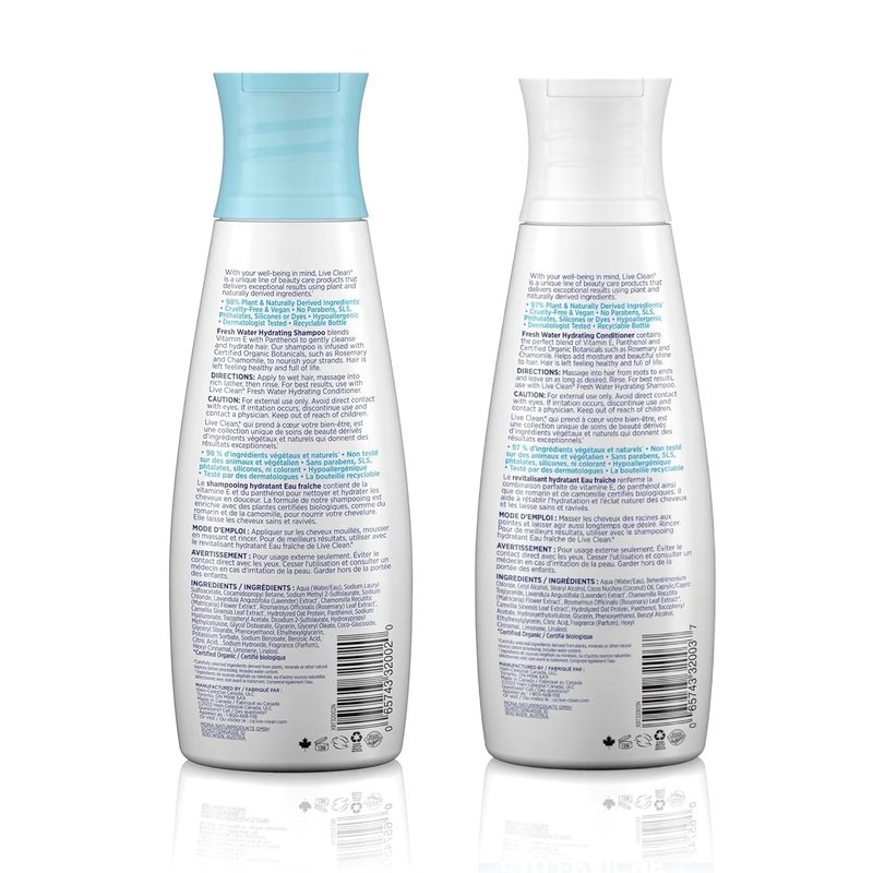 Live Clean Fresh Water Hydrating Shampoo and Conditioner Bundle With Rosemary Leaf Extract, Vitamin E and Lavender Extract, 12 fl. oz. Each