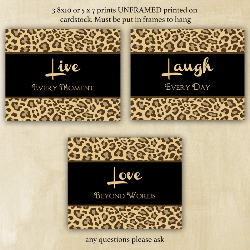 Live Laugh Love Animal Print Cheetah Wall Art Set of 3 5x7 or 8x10 Prints ((unframed))