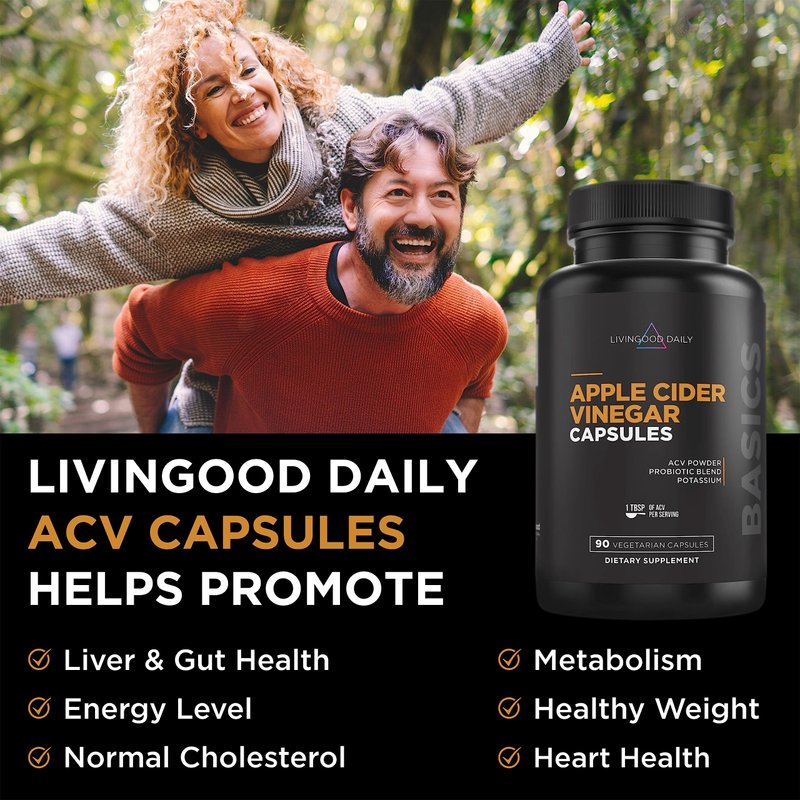 - The Mighty Mother: Livingood Daily Apple Cider Vinegar Capsules are powerhouses for multiple health benefits, like supporting blood sugar levels already within a normal range. ACV also helps with digestion, energy, metabolism, and cholesterol levels. 90 vegetarian capsules.