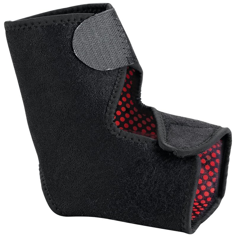 Relieve ankle and foot pain with this comfortable infrared ankle wrap. Soothing warmth penetrates deep into the joints to enhance circulation, reduce inflammation and ease pain. Adjustable ankle brace design provides soothing compression. Dual-adjustable touch closures ensure a custom fit on either right or left leg. Ideal for ankle injury recovery and support. Made from 70% neoprene, 15% nylon, 15% polyester. One size fits ankle circumference up to 10".