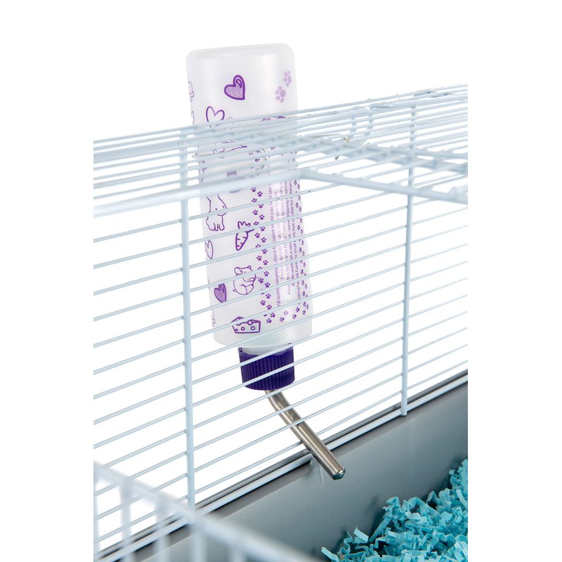 - SAFE CONTRUCTION; The 8oz bottle is designed for indoor and outdoor use. The bottle can withstand UV rays outside and is BPA free. The tube and stopper design does not have any plastic components that are inside the cage. This water bottle is sure to lighten up your pet cage while providing fresh water to your pet.