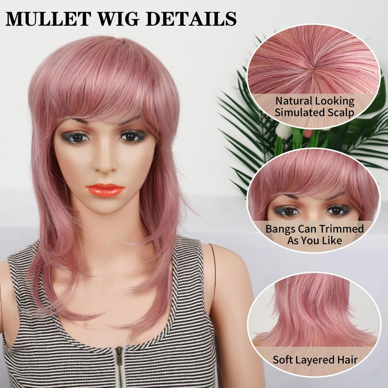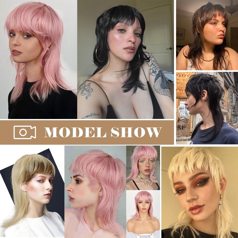 - 1. Pink Mullet Wolf Cut Wig: The wolf cut wig combines a layered and a mullet, creating a heavily textured and cool finish. The layers give the hair volume and movement. This is an edgy look that is reminiscent of the 70s 80s 90s but with a modern cool twist