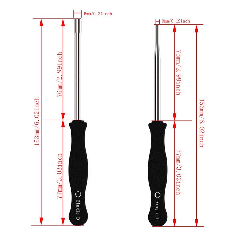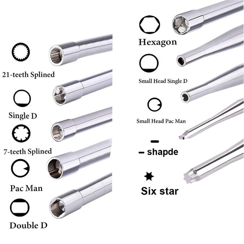 - Equipped with 10 different carburetor adjusting tool screwdrivers including: 21 Teeth Splined + 7 Teeth Splined + Single D + Small Head Single D + Double D + Pac Man + Small Head Pac Man + Hexagon + Shapde + Six Star and carburetor cleaning tools. Easy to adjust your 2 cycle small engine carb.Outside diameter: 7/32 inch; Overall length: 6-1/8 inch.(metal pole: 3 inch. plastic handle: 3-1/8 inch)