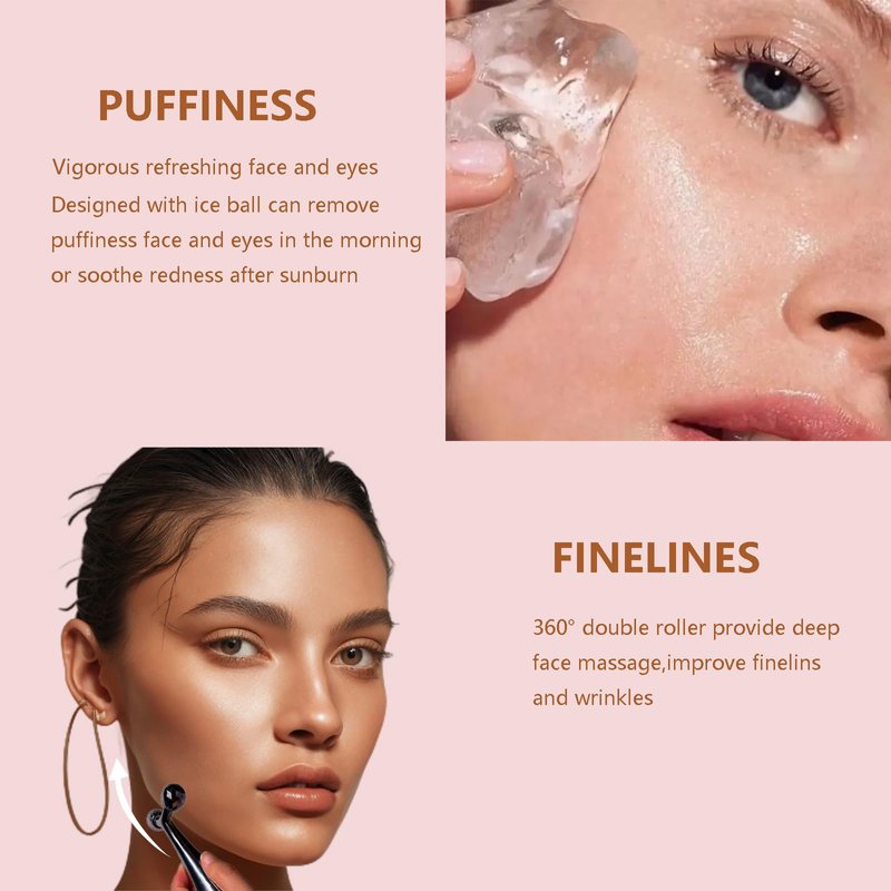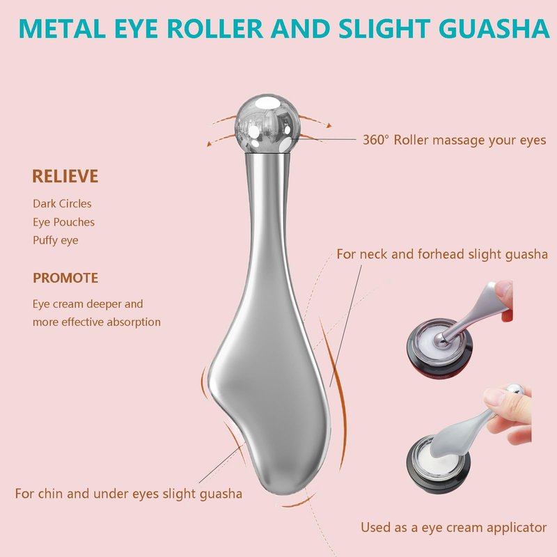 - 【Perfect Skin Care Set】Face roller with ice ball on the bottom and "Y" massage head.Eye roller with a small metal roll ball and a guasha tool,These two skin care tools can meet all your daily skin care needs,they are really perfect roller for women