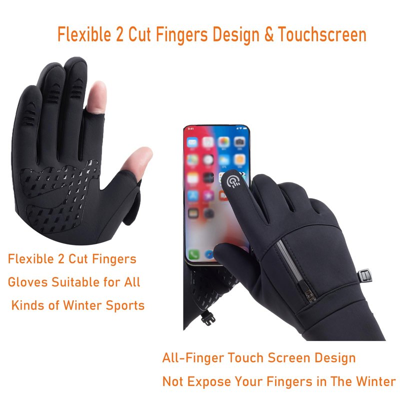 - Flexible 2 Cut Fingers Design & Touchscreen: This winter bike gloves uses flexible 2 Cut Fingers Design. You can expose your thumb and index finger to operate various dexterous activities. When you don’t want to expose your fingers, your index finger and thumb also can control the touch screen. In the cold winter, you can easily use your phone without taking off your motorcycle gloves