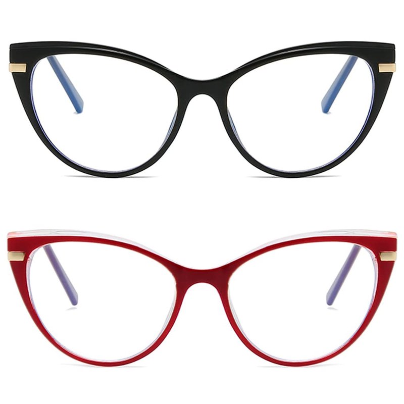 LJCZKA Blue Light Blocking Glasses Women Anti Eye satrain Computer Cat eye Eyeglasses Cateye Clear Frame (Black+Red)
