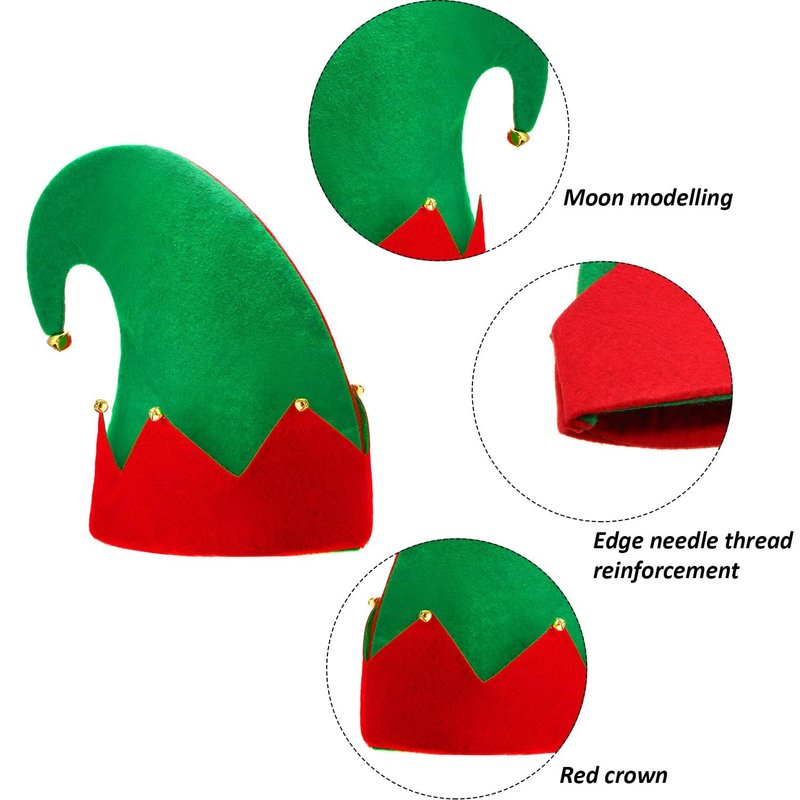 - The shape of the hat is different from that of a normal elf hat, they have a curved top, like a curved moon; The brim and top are decorated with bells, giving a crisp ringtone, you will easily become the focus of the crowd at the Christmas theme party when wearing it