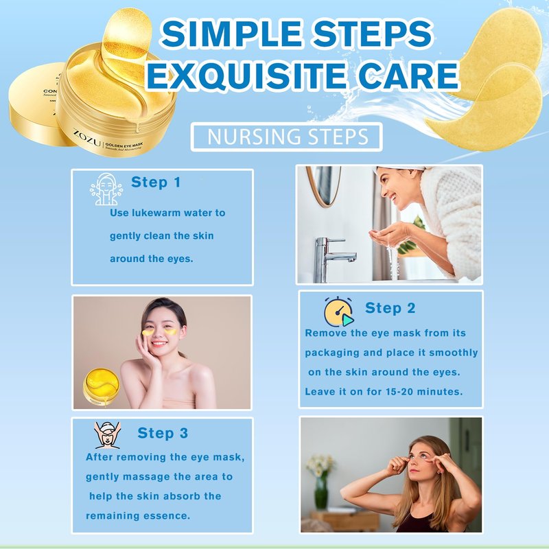 Lktvys Gold Eye Gel Patches 120 PCS, Anti-Aging and Revitalizing, Eye Mask for Puffy Eyes, Reduce Dark Circles and Fine Lines, Suitable for Both Men and Women Experience the luxury of Lktvys Gold Eye Gel Patches. Each box contains 60 pairs (120 patches) of our high-quality eye masks, enriched with revitalizing ingredients to nourish and rejuvenate your under-eye area. Key Features: Anti-Aging and Revitalizing: Infused with luxurious gold elements and anti-aging ingredients, these eye patches help to revitalize the skin, reducing the appearance of fine lines and wrinkles. Nourishing Eye Mask: Enriched with nourishing ingredients that promote skin elasticity and firmness. Reduce Puffiness and Dark Circles: Specifically designed to reduce puffiness and diminish dark circles, giving your eyes a refreshed and youthful appearance. Hydrating and Soothing: The formula deeply hydrates and soothes the delicate skin around your eyes, leaving it soft and supple. Suitable for All: Ideal for both men and women, our gold eye gel patches are suitable for all skin types and perfect for daily use. How to Use: Cleanse and dry your face. Gently apply the patches under your eyes. Leave on for 15-20 minutes. Remove patches and gently massage the remaining essence into your skin. Indulge in the luxurious care of Lktvys Gold Eye Gel Patches and enjoy brighter, smoother, and more youthful-looking eyes. Perfect for use at home or on-the-go, these eye masks are a must-have in your skincare routine.