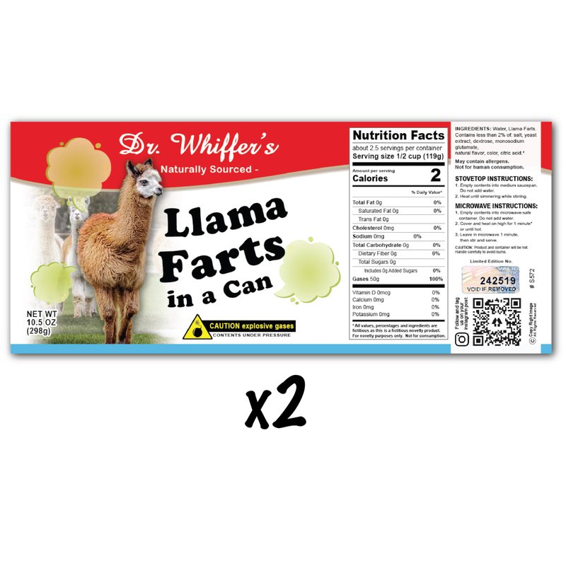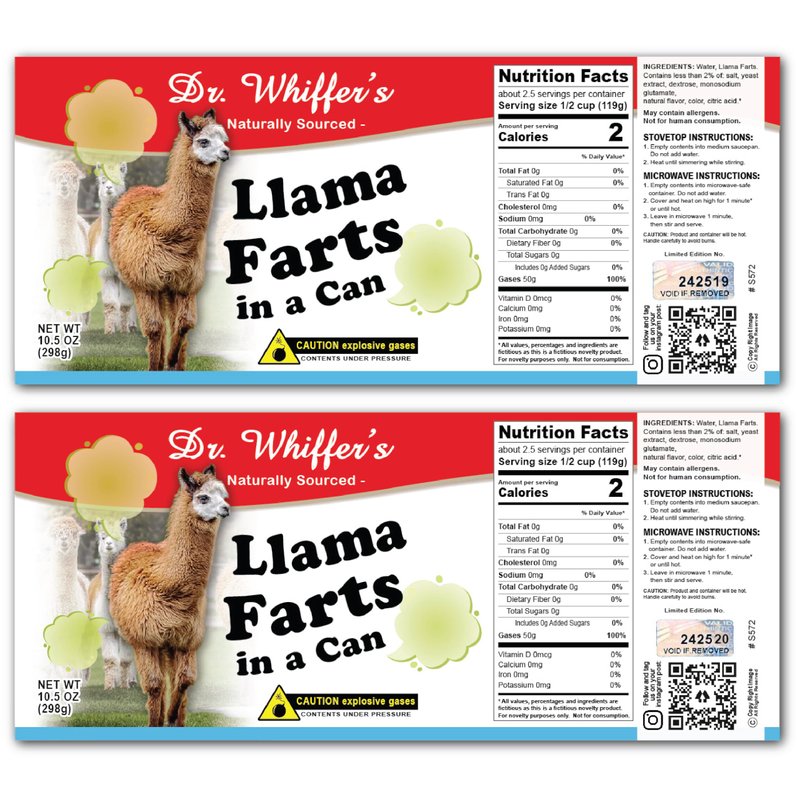 Llama Farts Novelty Soup Can Labels - FUNNY Joke Gift or Prank - Party Decorations, Supplies and Favors - Birthday, Xmas Stocking Stuffer, White Elephant Party, Secret Santa and More! (2)