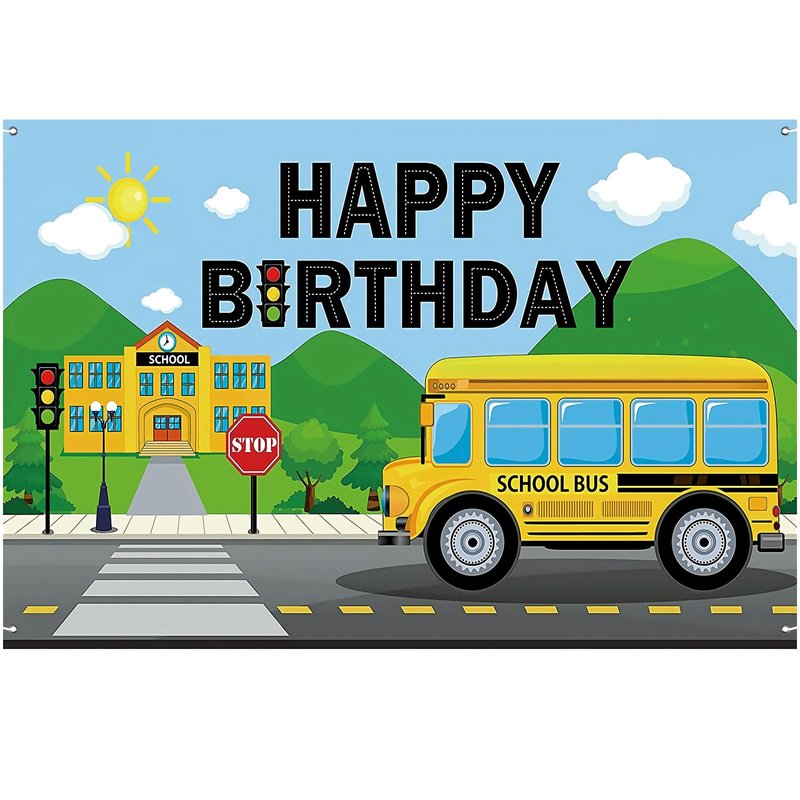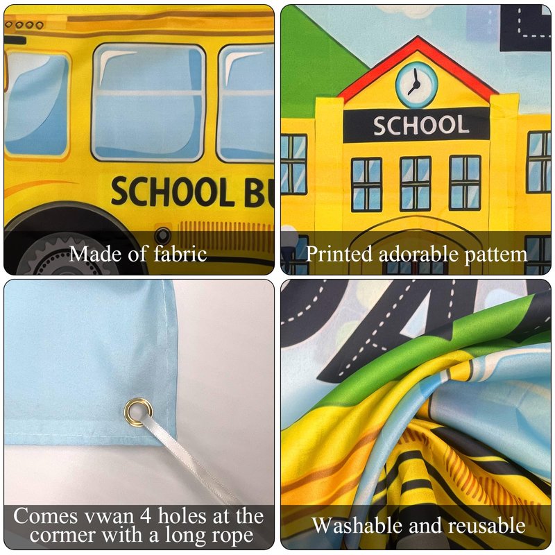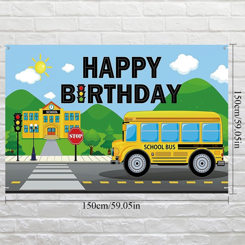 - Giant size: The yellow school bus birthday party decoration backdrop banner is 150 x 100 cm/ 59.05 x 39.37 inches, it is large enough for school bus birthday party decorations and it adds an extra touch to wheels bus baby party .