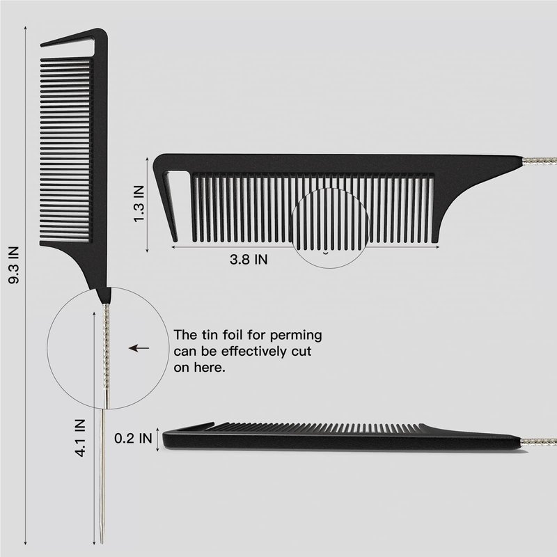 Versatile Styling Tool: Our rat tail comb with stainless steel is a versatile tool for hair stylists and professionals. Its thin and pointed end is perfect for sectioning and parting hair, while its sleek design allows for easy and precise styling. This multi-purpose comb can be used to create a variety of styles, from sleek and straight to textured and curly. Precision Parting: Our rat tail comb for parting is an ideal tool for achieving precise and clean partings. The pointed end makes it easy to create straight lines down the center of the head, or intricate partings for braids and twists. Its metal construction ensures durability, making it a reliable tool for frequent use and cleaning. Metal Durability: Made from stainless steel, our metal rat tail comb is built to last. Unlike plastic combs that can break or warp easily, this comb is resistant to rust and corrosion, ensuring its longevity in your styling kit. Braiding Essential: Our braiding comb is an essential tool for anyone who loves to create intricate braided styles. The pointed end of the rat tail comb makes it easy to section hair, while its sleek design allows for smooth and seamless partings. Whether you're creating cornrows, box braids, or a classic French braid, this comb is the perfect tool for achieving your desired look. Hair Styling Must-Have: Our tail comb is a must-have tool for all hair stylists. Its thin and pointed end makes it perfect for sectioning and parting hair, while its sleek design allows for easy and precise styling. Whether you're creating updos, blowouts, or any other hairstyle, this comb is an essential tool for achieving your desired look.