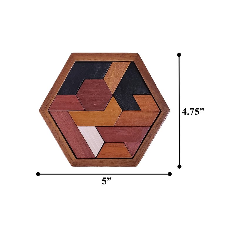 LMC Products Hexagon Wooden Puzzle Toy - Brain Teasers for Kids Ages 10-12. Also Great Brain Teaser Puzzles for Adults