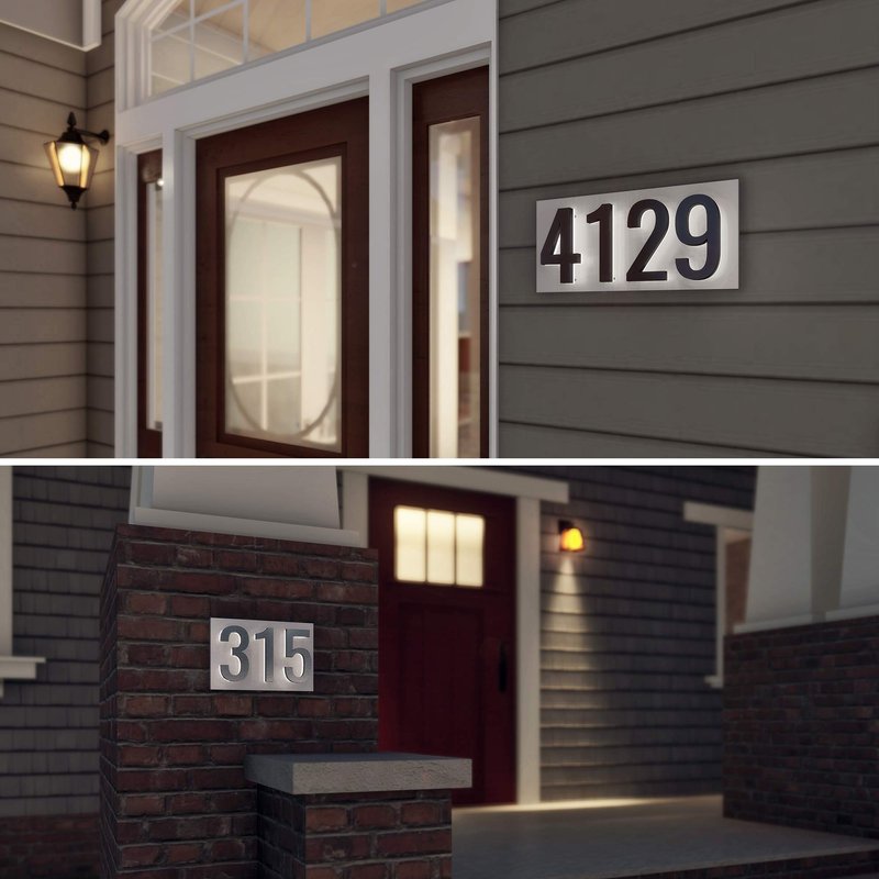 - High quality light up house numbers made of stainless steel with an acrylic backing. Brightness can be adjusted with the spacing options provided with each number, or mounted flush to minimize light output. Quality illuminated house numbers