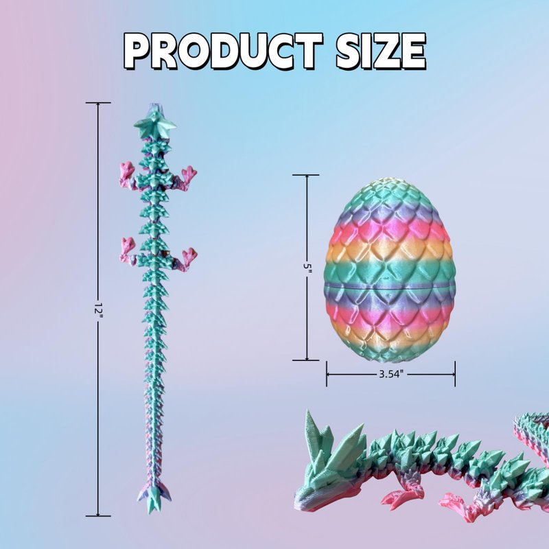 - Size and packaging: You will receive a 28CM/11 inch articulated dragon, a 13CM/5.1 inch dragon egg, Both the egg and dragon are designed with a variety of random colors, adding a touch of surprise to the experience