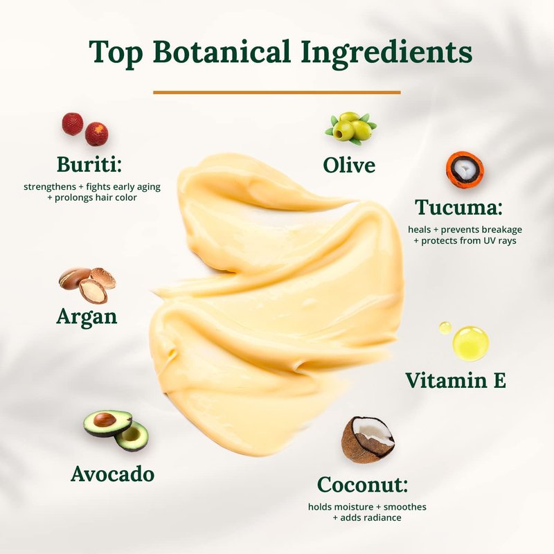 - Natural Oils Enrich Hair - The hydrating mask contains cold-pressed Buriti oil that strengthens and prolongs hair color, Tucuma oil that prevents breakage and protects from UV rays, and Coconut oil that holds moisture, smoothes, and adds radiance—enriched with antioxidants, vitamins, amino acids, essential fatty acids, phospholipids, and phytosterols