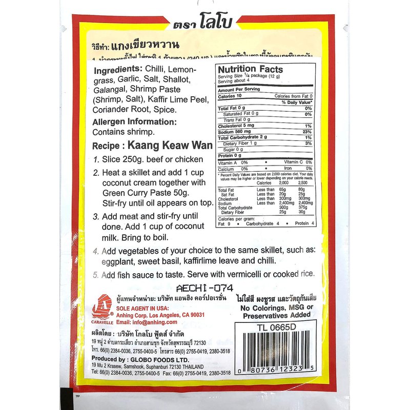 Lobo Thai Green Curry Paste - No MSG, No Preservatives, No Artificial Colors (Pack of 5)