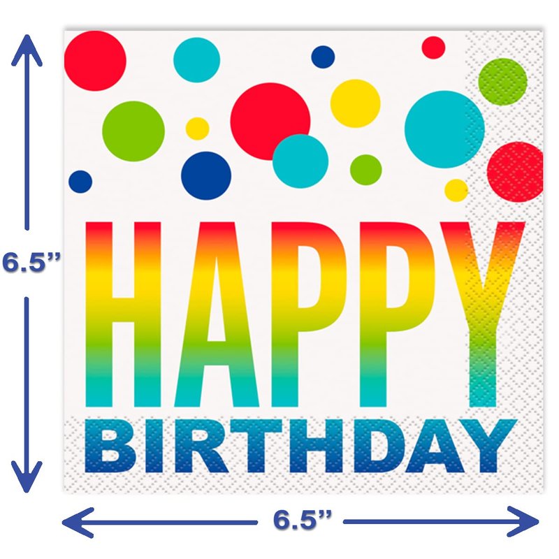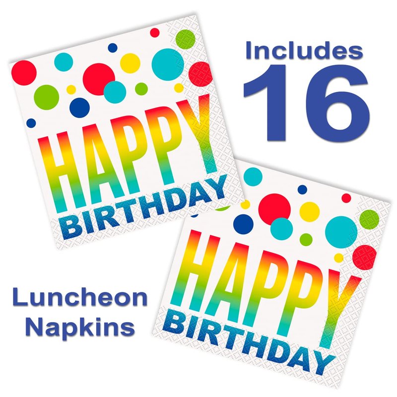 - VIBRANT AND COLORFUL - These decorative and colorful birthday party plates and napkins will add a splash of color to any celebration. These happy birthday plates and napkins feature a very bright pattern to bring smiles and happiness to your special someone.