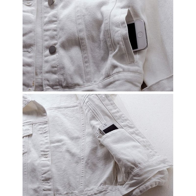 Locachy Women's Casual Denim Jacket Solid Color Basic Long Sleeve Jean Jacket Coat White M