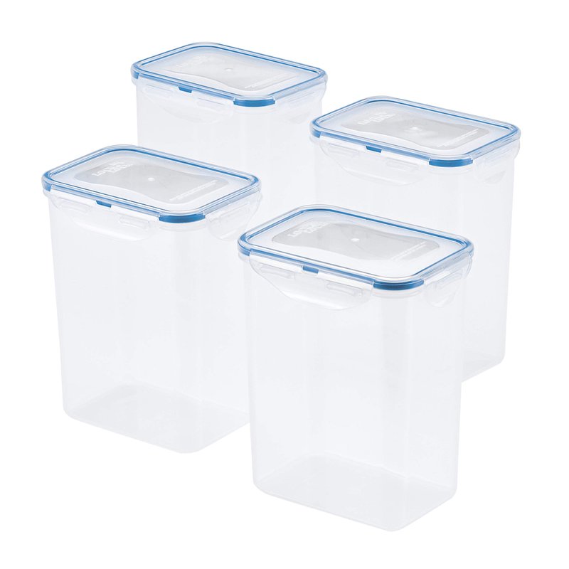 LocknLock Easy Essentials Airtight Rectangular Tall Food Storage Container 7.61 Cup, 4 Piece, Clear