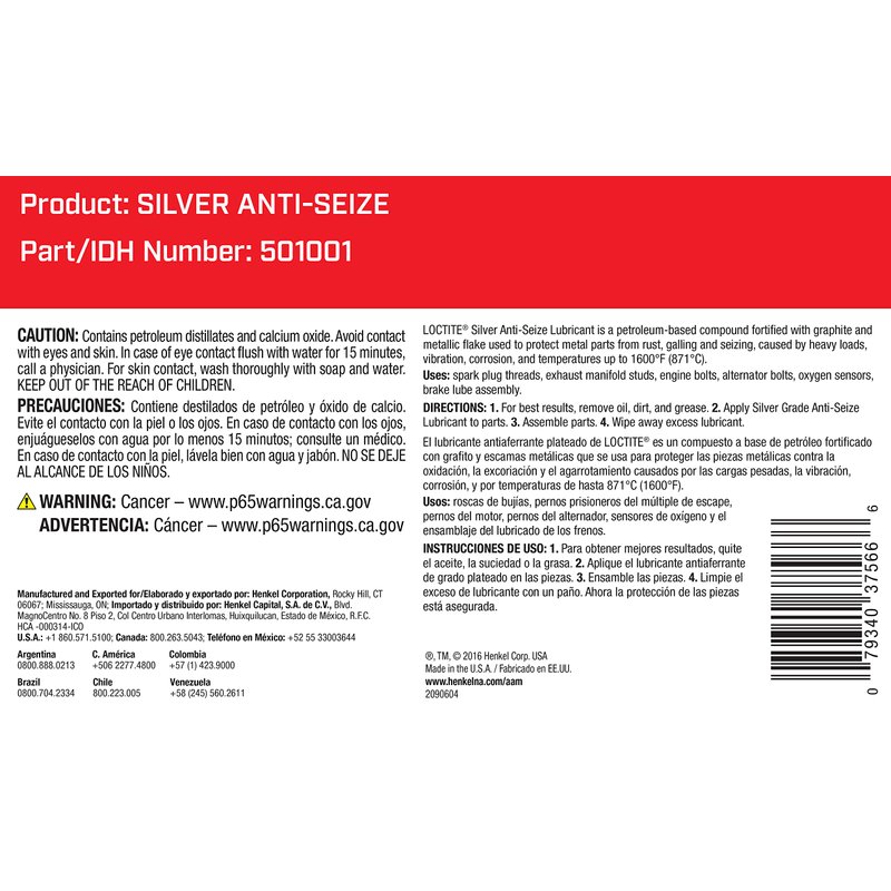 Loctite 501001 Silver-Grade Anti-Seize Lubricant, 1 lb, Brushtop
