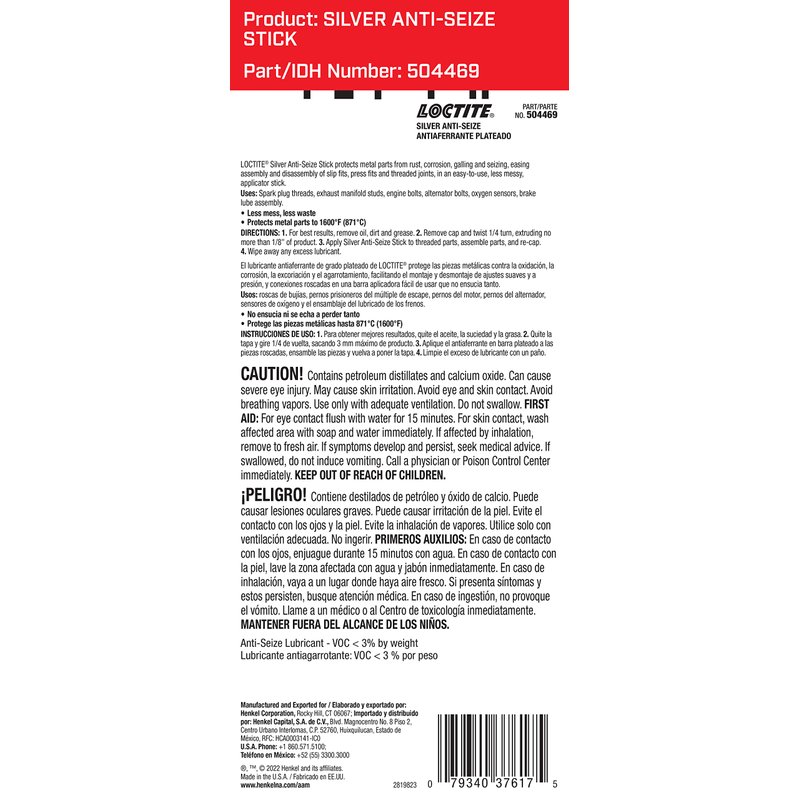 Loctite Silver Grade Anti-Seize Lubricant 20g Stick