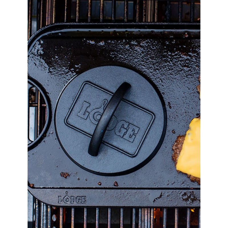 - The Lodge 6.25 Inch Seasoned Cast Iron Burger Press is made for decades of cooking and comes seasoned for an easy-release finish that improves with use.