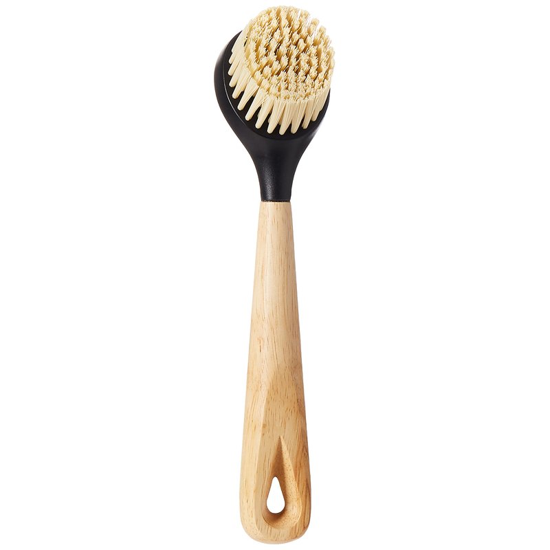 - Features: nylon bristle and natural lacquered finish wood handle